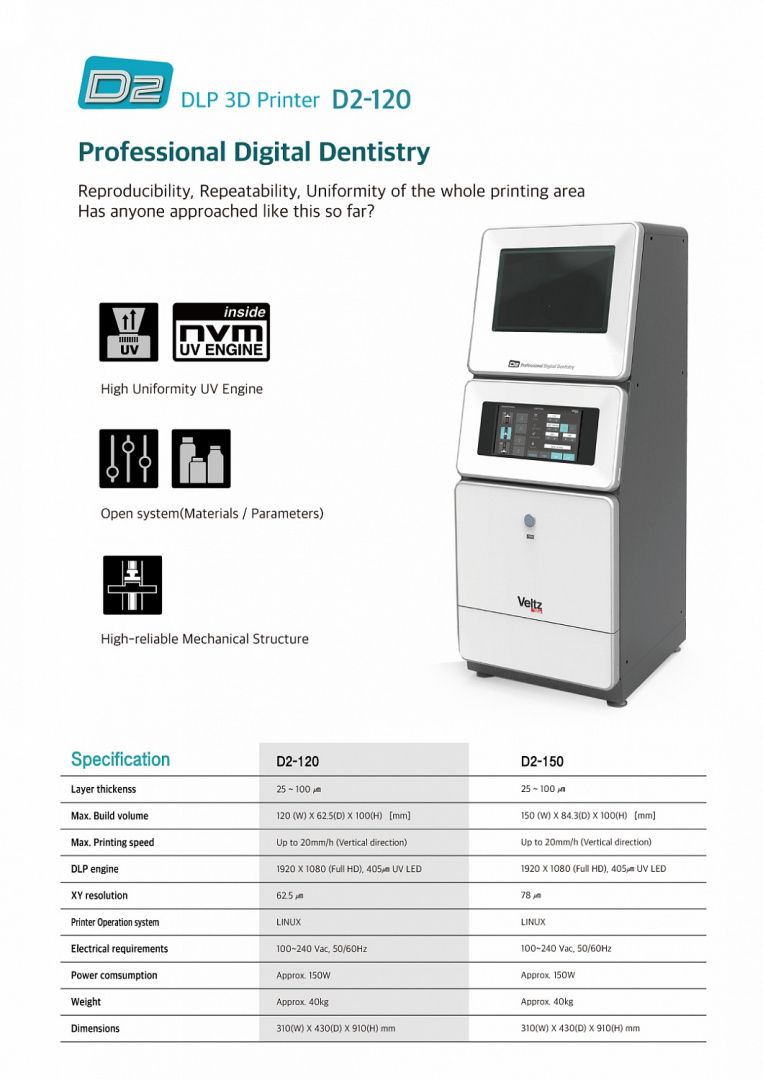 Veltz Серия D2 - отличное оборудование для производства стоматологических изделий, изготовленных из сертифицированных биосовместимых фотополимерных смол.
