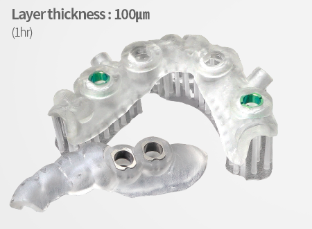 DG-1 является биосовместимым сертифицированным материалом класса 2, пригодным для печати хирургических направляющих. Из-за высокой прочности и твердости этого материала, вы можете вставить любые металлические рукава непосредственно после печати деталей. Кроме того, высокая прозрачность дает возможность стоматологам проводить более эффективные операции. Для стерилизации деталей вы можете использовать автоклав, гамма-излучение и чистку спиртом во время стерилизации.