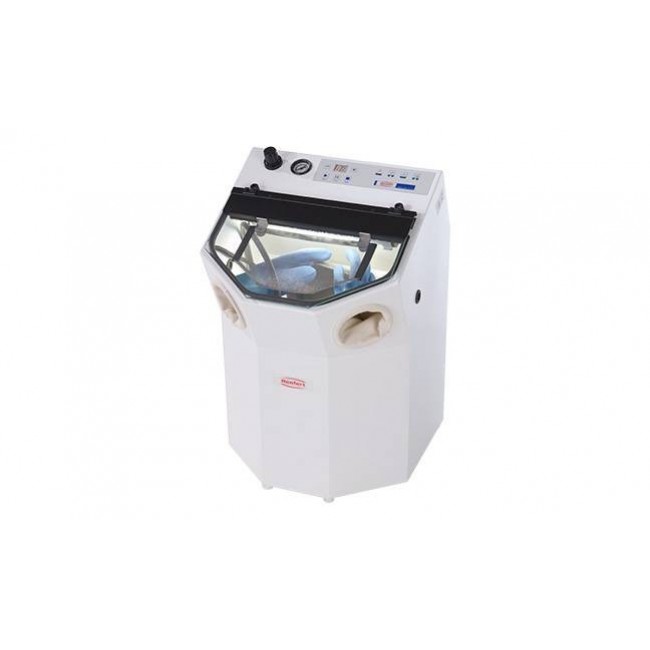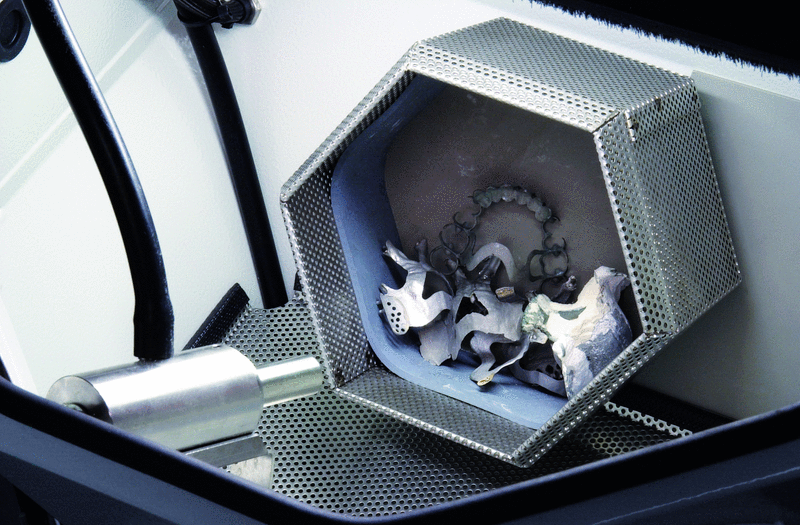 Вращается с помощью специальной геометрии. Одновременная обработка до 7 объектов. В среднем, полная автоматическая обработка объекта завершается всего лишь за 10 мин. Резиновая прокладка в корзинке защищает объекты и корзинку. Очень простое снятие струйной корзинки (для струйной обработки в ручном режиме).