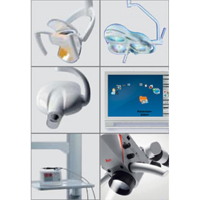 Открытая несущая система у стоматологической установки. Быстрая доступность к рабочим элементам экономит ваше время и препятствует лишней трате сил. Все находится непосредственно под вашей рукой: операционный светильник, рентген-аппарат, операционный микроскоп, дополнительные приборы, монитор – все техническое оборудование вашего кабинета.