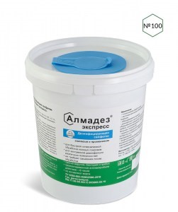 Форма выпуска: ёмкость-диспенсер с салфетками №100 пропитанными «Алмадез-экспресс»
