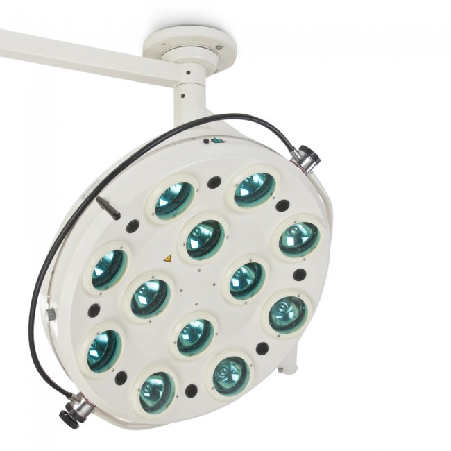Светильник хирургический ZMD (5+12 ламп)- этот потолочный двухкупольный светильник применяется для освещения рабочего поля при хирургических операциях и диагностических обследованиях практически во всех областях современной медицины.