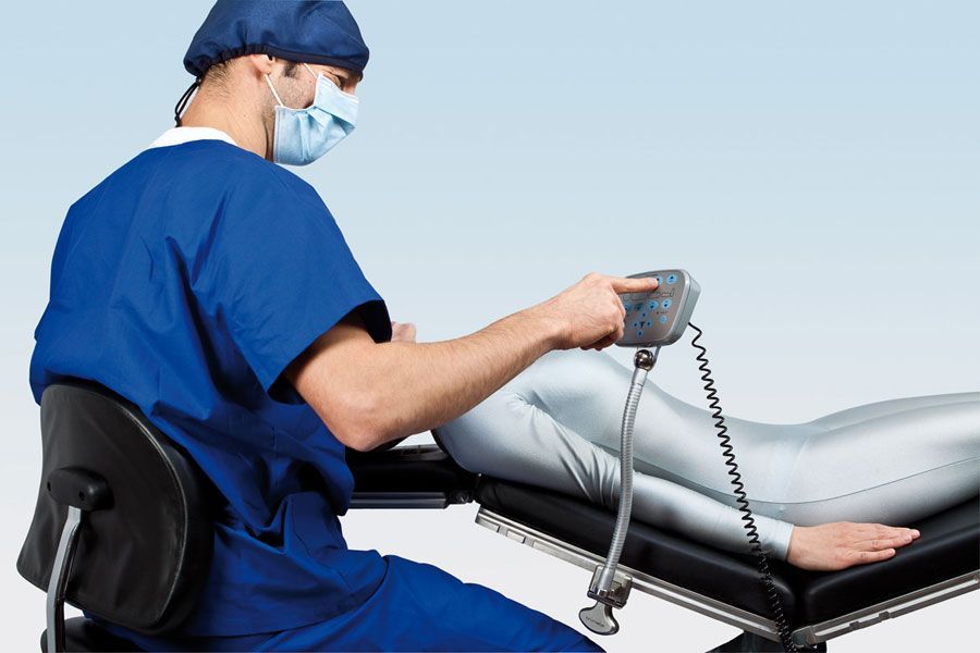 Дистанционное управление для регулировки хирургического стола должен всегда находиться в пределах досягаемости. В верхней части этого гибкого держателя расположена магнитная пластина, удерживающая панель дистанционного управления в желаемом положении.