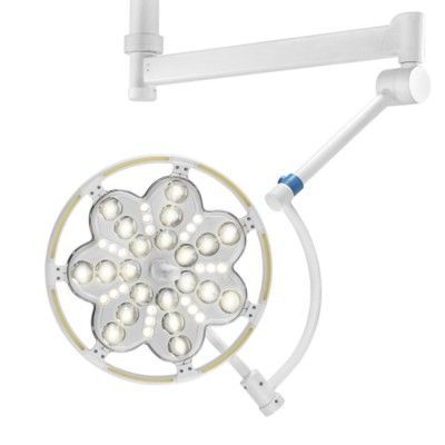 В хирургическом медицинском операционном светильнике ЭМАЛЕД 300 используются белые светодиоды высокой мощности, которые разделяются на 2 группы. Первая группа светодиодов формирует сфокусированный световой поток, который обеспечивает глубокое освещение операционного поля. Для повышения эффективности работы светодиодов этой группы мы используем специальные отражательные элементы, которые предотвращают потерю света. Вторая группа светодиодов формирует широкий световой поток, который обеспечивает освещение операционного поля в широкой площади. Этому способствуют оптические элементы с полным внутренним отражением света.