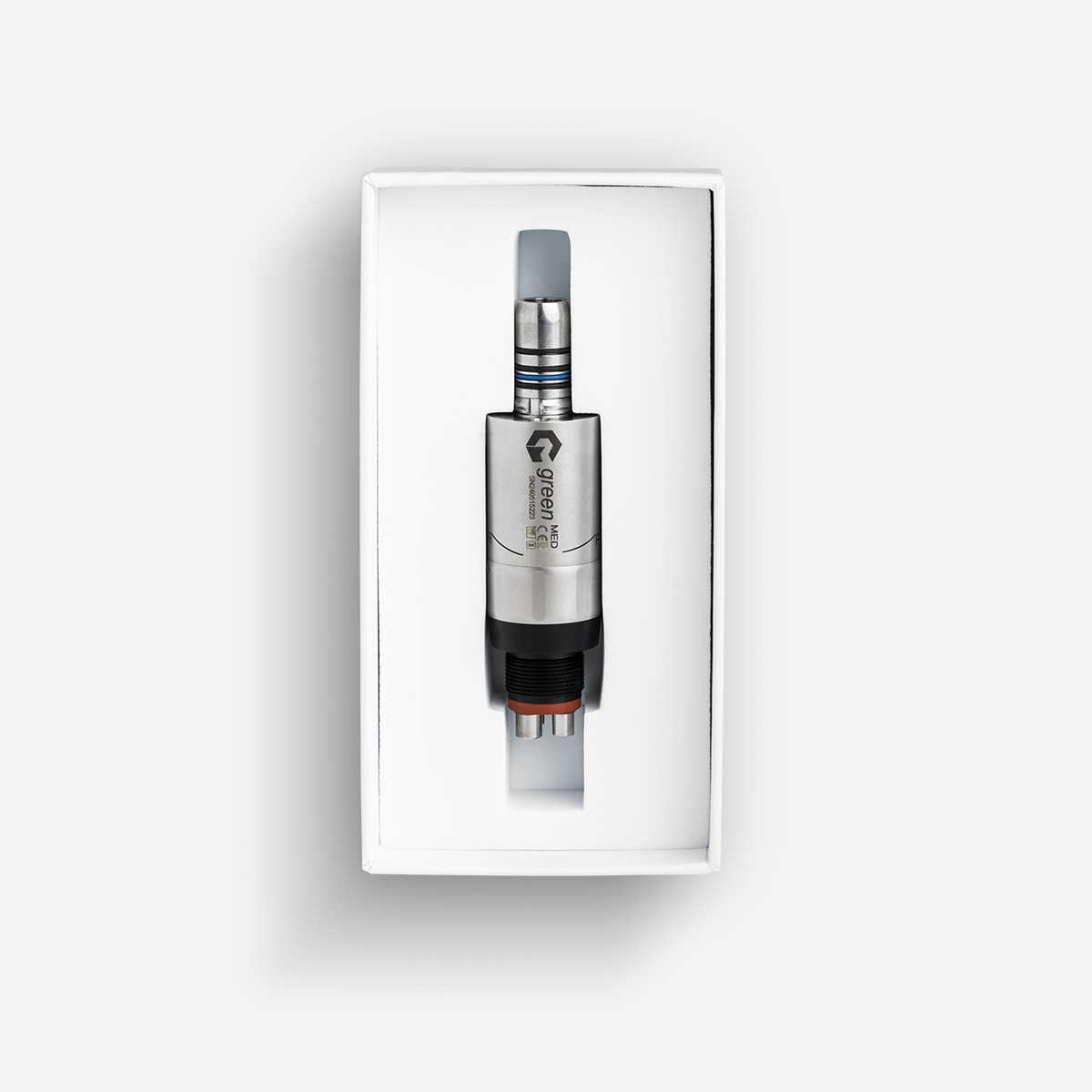 Пневматические двигатели Гринмед 1:2 обладают длительным сроком службы благодаря внутренней системе охлаждения. Она позволяет избежать перегрева и сохранить срок службы крутящего момента. Это необходимо, так как скорость вращения мотора составляет 60 000 оборотов в минуту. Её можно плавно регулировать, настраивая устройство под индивидуальные предпочтения, но это никак не повлияет на громкость работы.