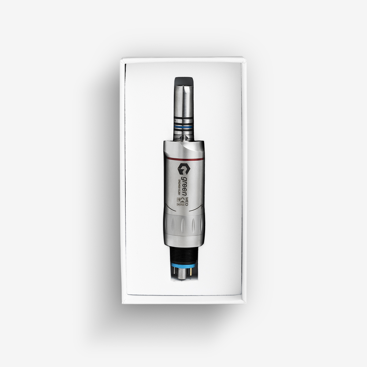 Пневматические двигатели Гринмед 1:2 обладают длительным сроком службы благодаря внутренней системе охлаждения. Она позволяет избежать перегрева и сохранить срок службы крутящего момента. Это необходимо, так как скорость вращения мотора составляет 60 000 оборотов в минуту. Её можно плавно регулировать, настраивая устройство под индивидуальные предпочтения, но это никак не повлияет на громкость работы.