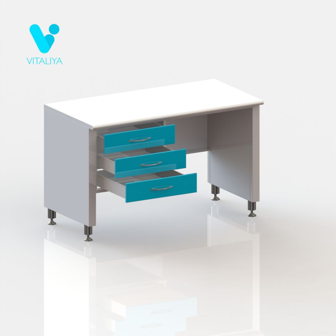Стол с тремя выдвижными ящиками, на хром.ножках