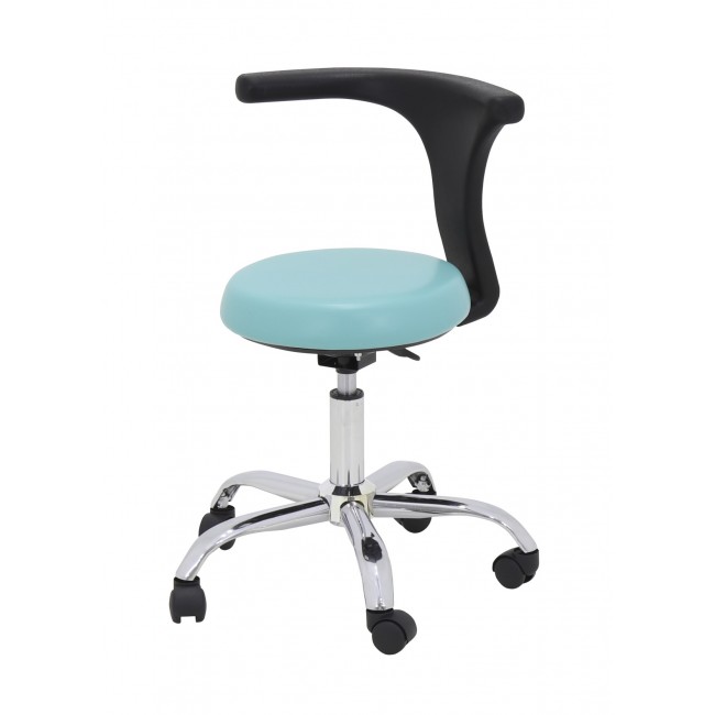 Стул имеет возможность регулировки высоты - вы можете менять ее в зависимости от проводимой процедуры. Стул установлен на пятилучье, которое делает всю конструкцию устойчивой и надежной. Небольшие колесики позволят передвигать его туда, куда вам необходимо, и при этом не царапают пол, обеспечивая мягкое и плавное движение.