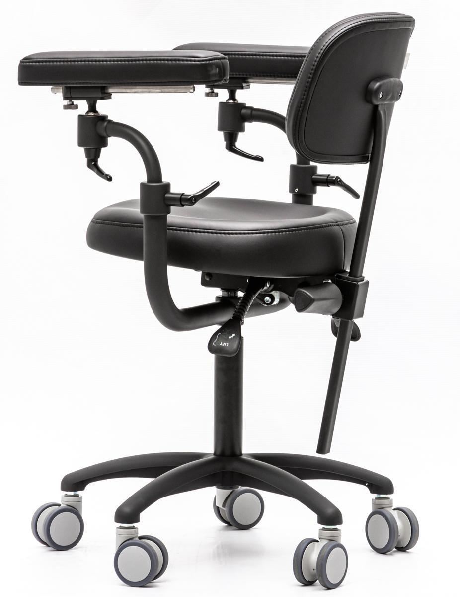 Одна из самых важный частей стула микроскописта — подлокотники. Они помогают долгое время держать руки в одном положении без появления боли. Подлокотники стула Mercury ELITE оснащены функцией регулировки высоты и наклона. Вы можете настраивать их так, как вам будет удобно для более комфортной и продолжительной работы.