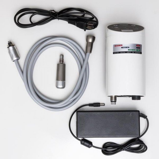 - Включите блок управления, достаньте микро-мотор из холдера, вы можете управлять мотором с помощью педали стоматологической установки. Способ управления такой же, как и на воздушном моторе