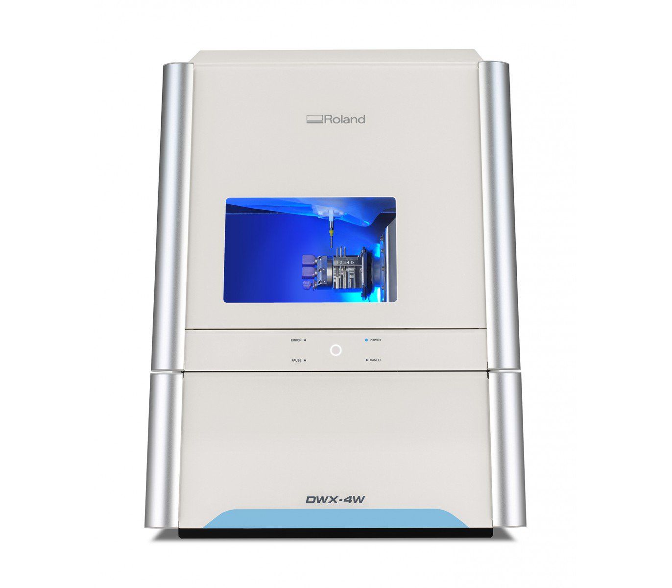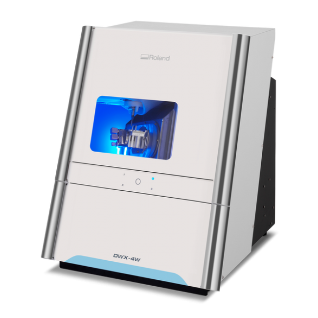 Способен выполнять обработку таких стоматологических конструкций как колпачки, коронки, вкладки, виниры и т.д в полностью автоматическом режиме. Автоматическая смена инструмента с магазином на четыре позиции, полноценная 4-х осевая обработка и возможность установки до трех заготовок из различных материалов делает станок максимально эффективным даже для небольших стоматологических клиник. При всем этом как и все решения Roland DWX-4W обладает открытой архитектурой что позволяет ему работать с любыми CAM-программами и встраиваться в любые стоматологические CAD/CAM комплексы.