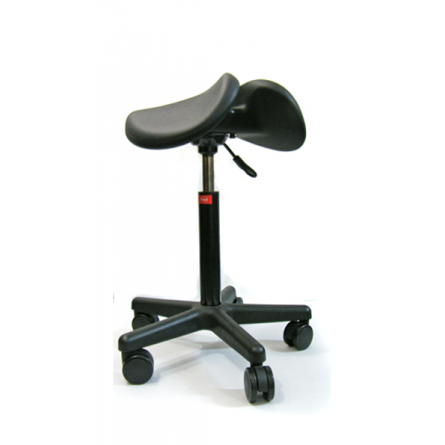 На стуле-седле человек не сидит полностью, а занимаем промежуточное положение между стоячим и сидячим. При этом угол между бедром и позвоночником получается около 135 градусов, а ноги расставлены в стороны. Это поза наездника, самая естественная для человека среди всех сидячих поз.
