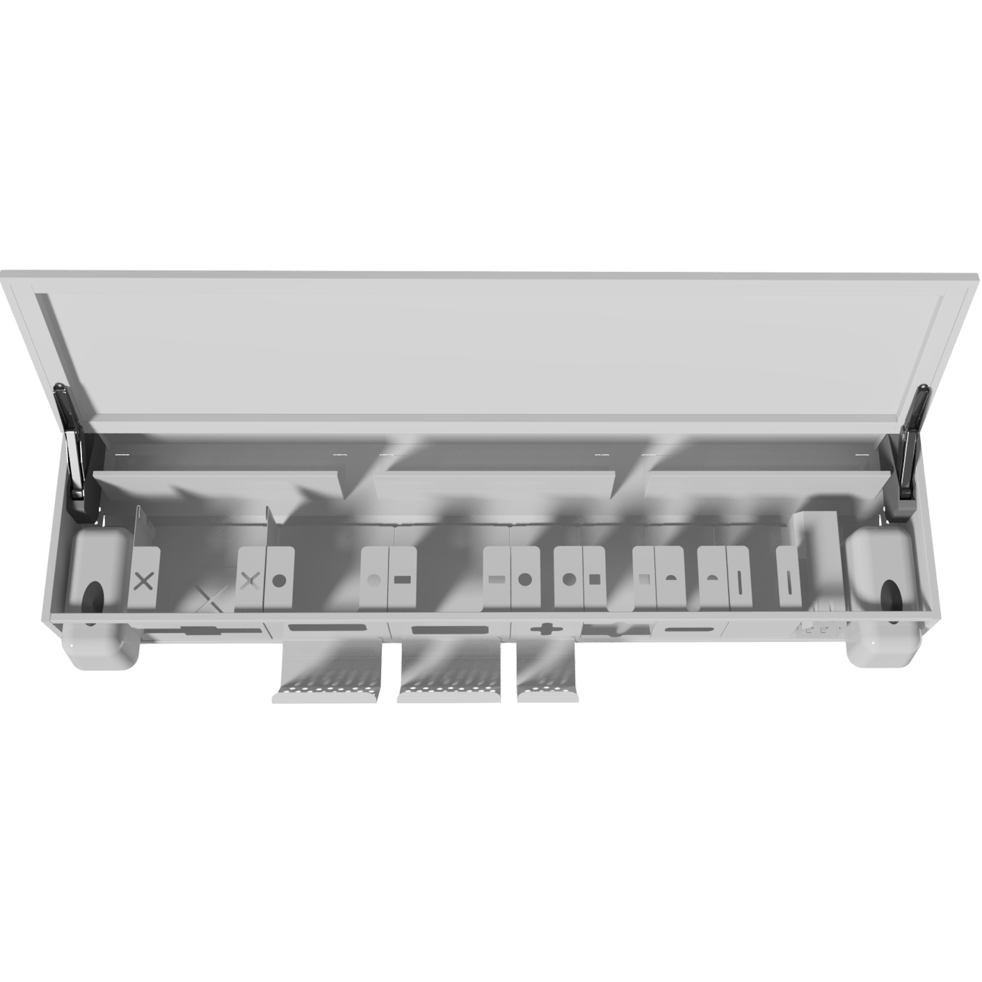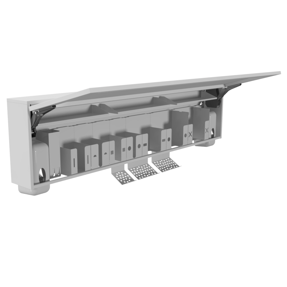 Оснащён десятью съёмными модулями, которые можно заменить, убрать или переставить по вашему усмотрению. Содержимое каждого модуля можно извлечь без открывания дверцы.