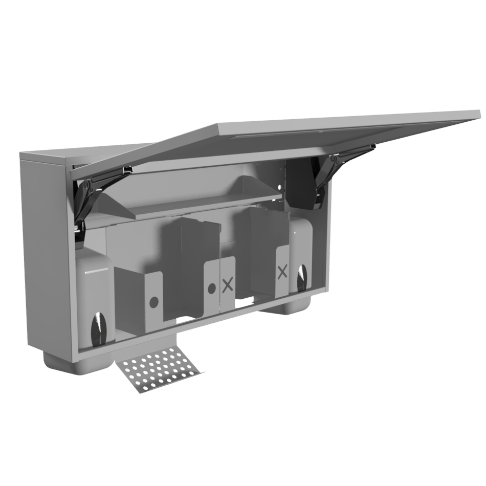 Оснащён четырьмя съёмными модулями, которые можно заменить, убрать или переставить по вашему усмотрению. Содержимое каждого модуля можно извлечь без открывания дверцы.
