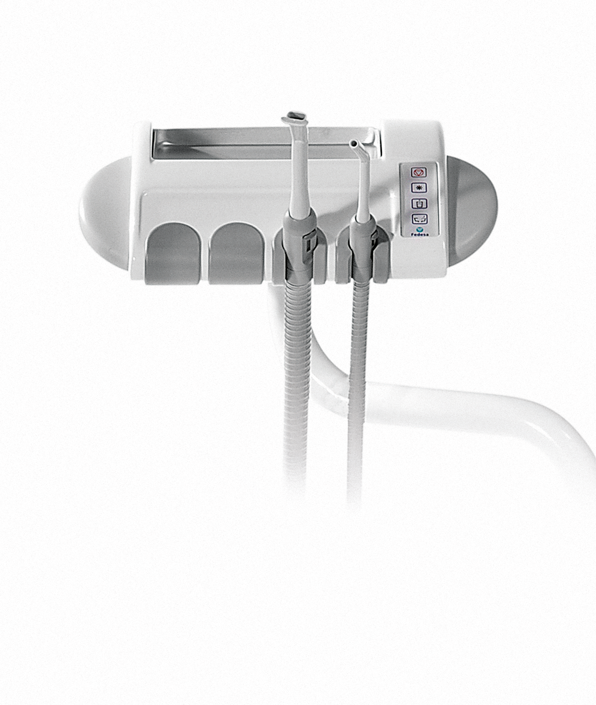 Модуль ассистента на 4 инструмента, закреплён на гидроблоке на поворотном кронштейне: слюноотсос и пылесос под вакуумную помпу (влажная аспирация). Сенсорный пульт управления гидроблоком: функция автоматического наполнения стакана, функция ополаскивания плевательницы и включения светильника.
