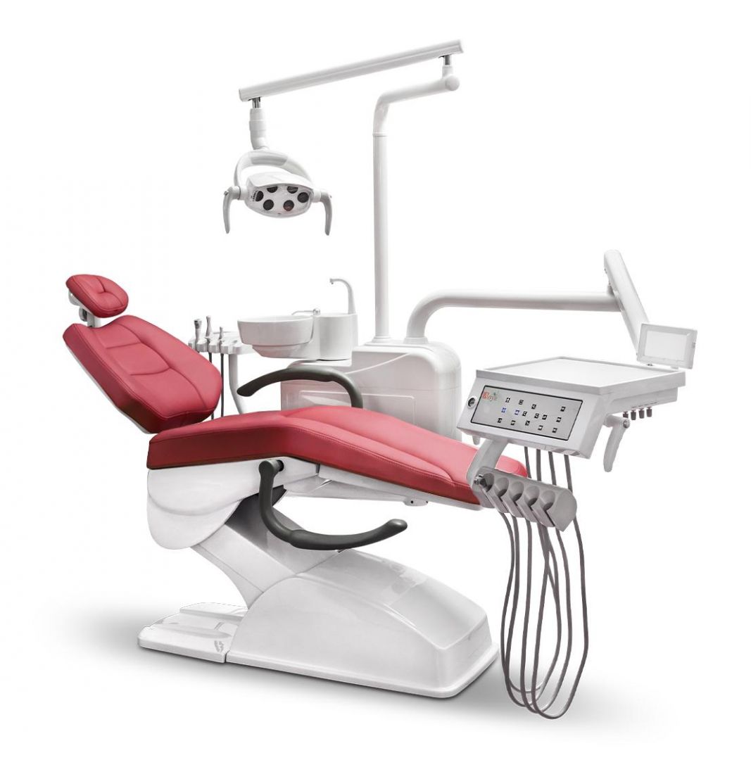 - Врачебный модуль имеет пантографическое плечо с пневмотормозом в рабочем положении и гладкую сенсорную панель управления функциями кресла.