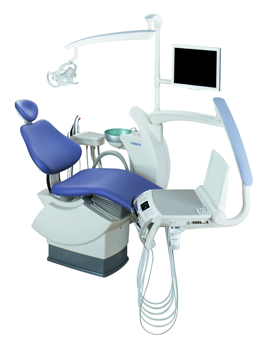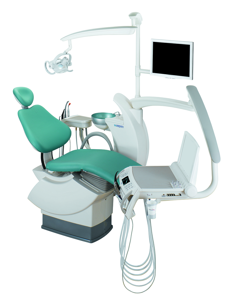 Стоматологическая установка оснащена всеми необходимыми функциями. Многие детали съёмные для комфортной дезинфекции. Наполнитель стакана с датчиком освещения.