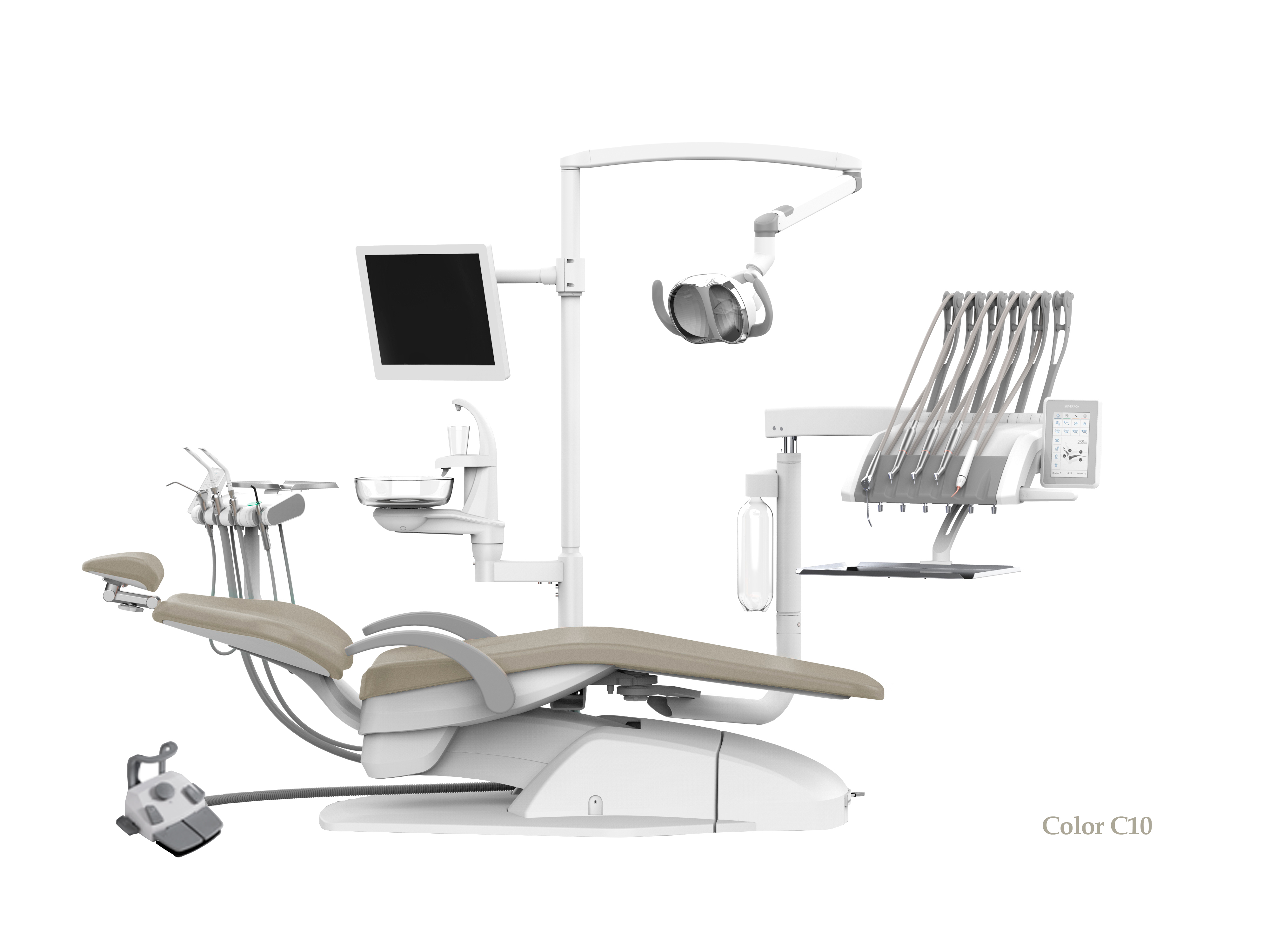 - Управление светильником осуществляется с помощью сенсорной панели на блоке врача, блоке ассистента и педали ножного управления