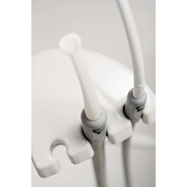Длинные шланги инструментов, превосходно сбалансированные рукоятки, система поддержки модулей Friend UP позволяют врачу во время работы всегда держать инструменты под рукой. Инструментальные шланги обеспечивают врачу плавность и лёгкость движений во время работы с инструментами, обладают высокой подвижностью и широким радиусом действия. Панель управления имеет ровную гладкую поверхность, изолированную прозрачной мембраной - это новый уровень инфекционной безопасности управления стоматологической установкой Swident.