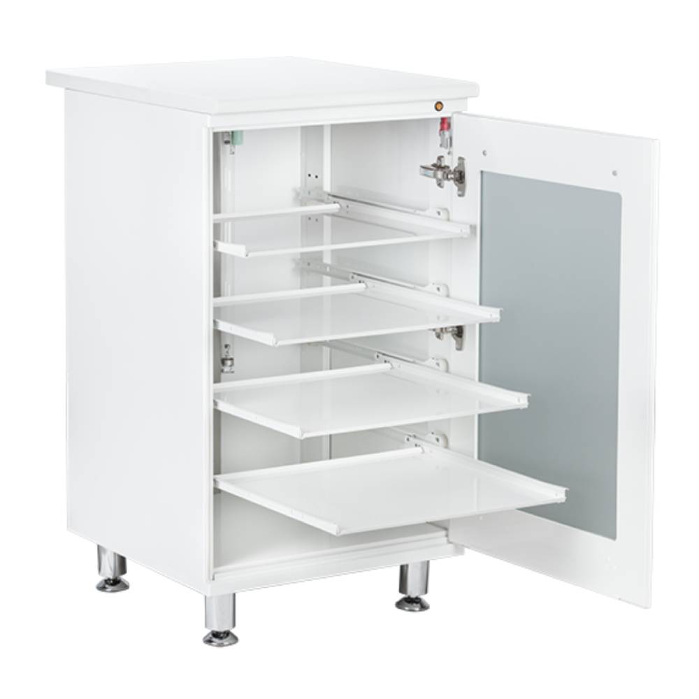 Тумба бактерицидная с 4 выдвижными металлическими полочками, оснащена двумя лампами TUV-15 PHILIPS. Цена указана без учёта столешницы.