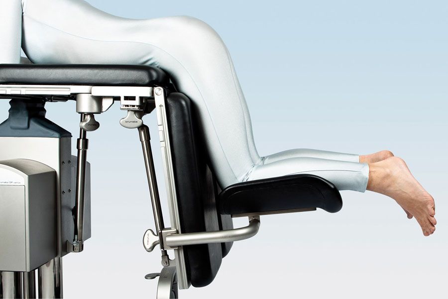 Для комфорта пациента в коленно-локтевом положении служит этот упор для коленей с мягкой обивкой (необходимо 2 штуки). Крепится к секции для ног хирургического стола в сложенном положении при помощи монтажных консолей, наклон регулируется.