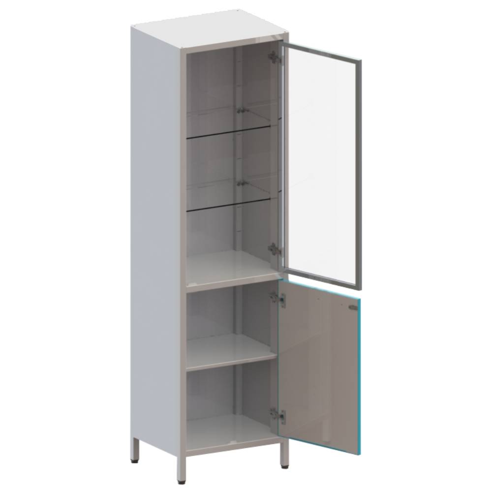 - 3 стеклянные регулируемые полки; - Дверка нижней секции из металла, с одной металлической полкой;