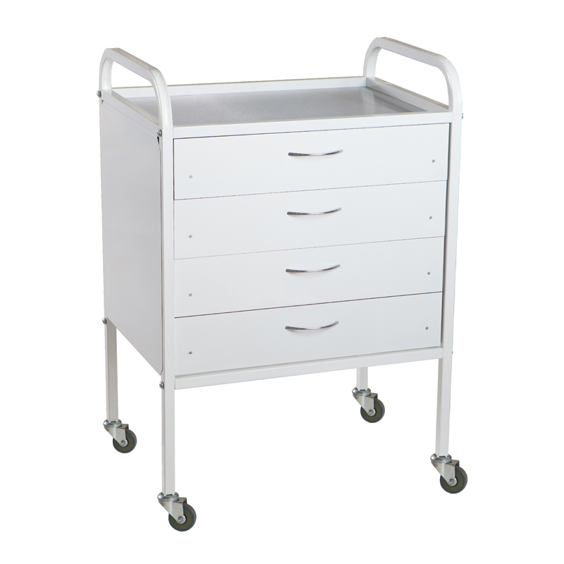Каркас выполнен из профильной стальной трубы 20х20, как и все изделия серии «СМИ». Передвижная тумба имеет четыре ящика на опоре. Столик стандартно комплектуется колесами из серой резины диаметром не менее 50мм*, два из которых с тормозом. Полки, по выбору заказчика, могут быть из металла или нержавеющей стали. Для крепления ящиков применяются телескопические шариковые направляющие, ручки из хрома. Изделие поставляется в разобранном виде, что позволяет экономить средства при перевозке в другие регионы, однако, по желание заказчика, столик может поставляться и в собранном виде. Возможно изготовление полностью из нержавеющей стали. 4 ящика позволяют разместить большое количество мелких предметов отдельно друг от друга, а верхняя полка служит для хранения предметов наиболее часто используемых в процессе работы сотрудников медицинского учреждения.