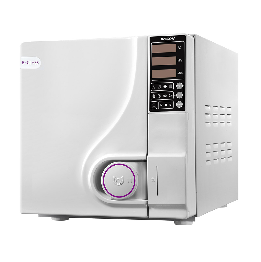 • Стандартный В-класс стерилизации с трехкратным вакуумированием и сушкой, остаточная температура простерилизованного инструмента менее 0,2%.