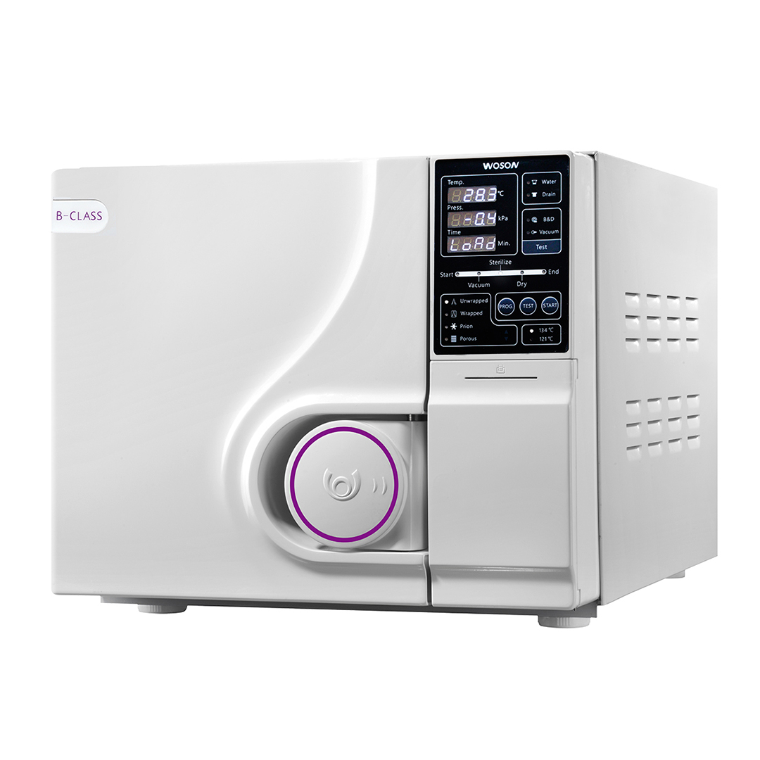 • Стандартный В-класс стерилизации с трехкратным вакуумированием и сушкой, остаточная температура простерилизованного инструмента менее 0,2%.