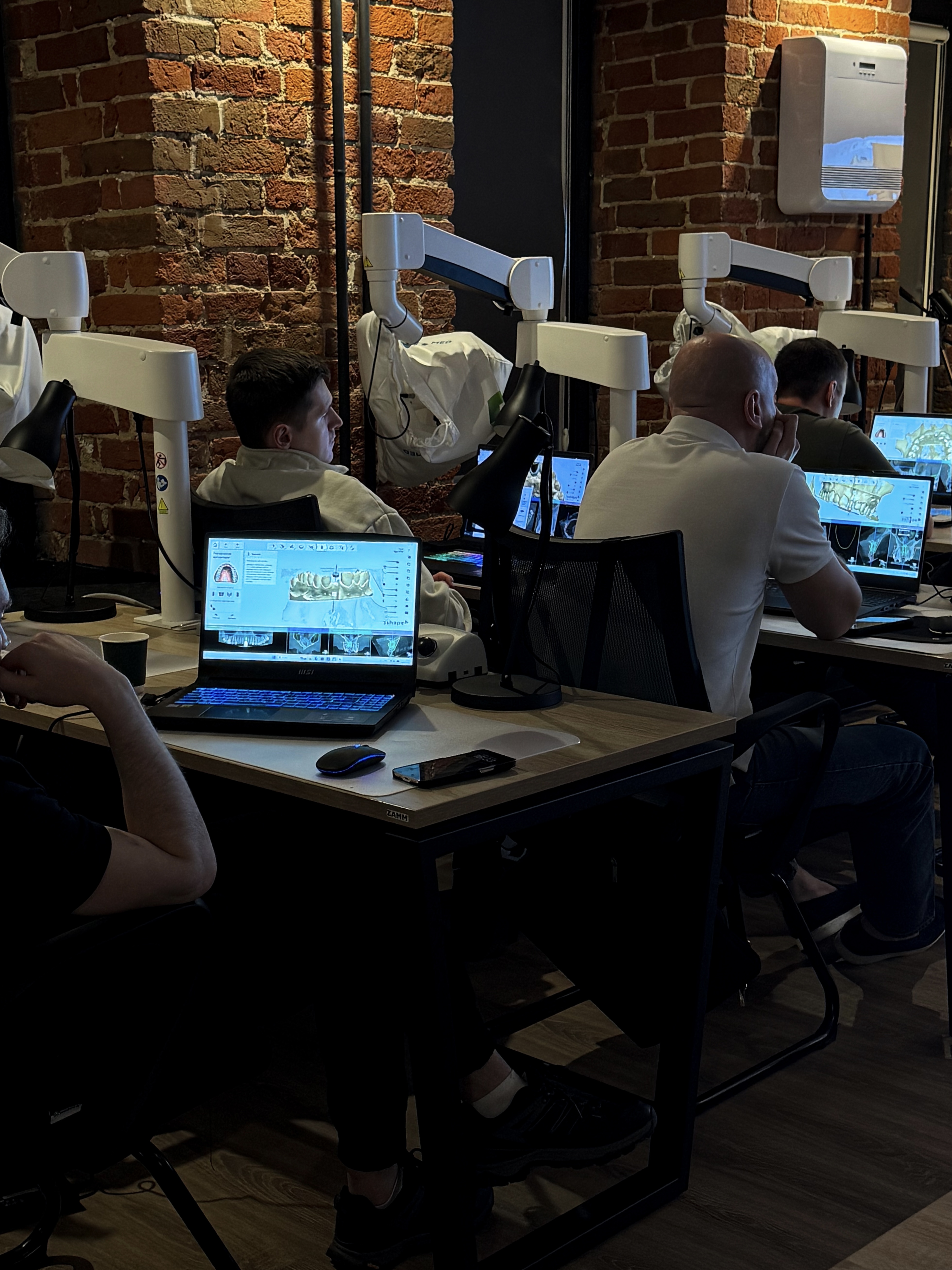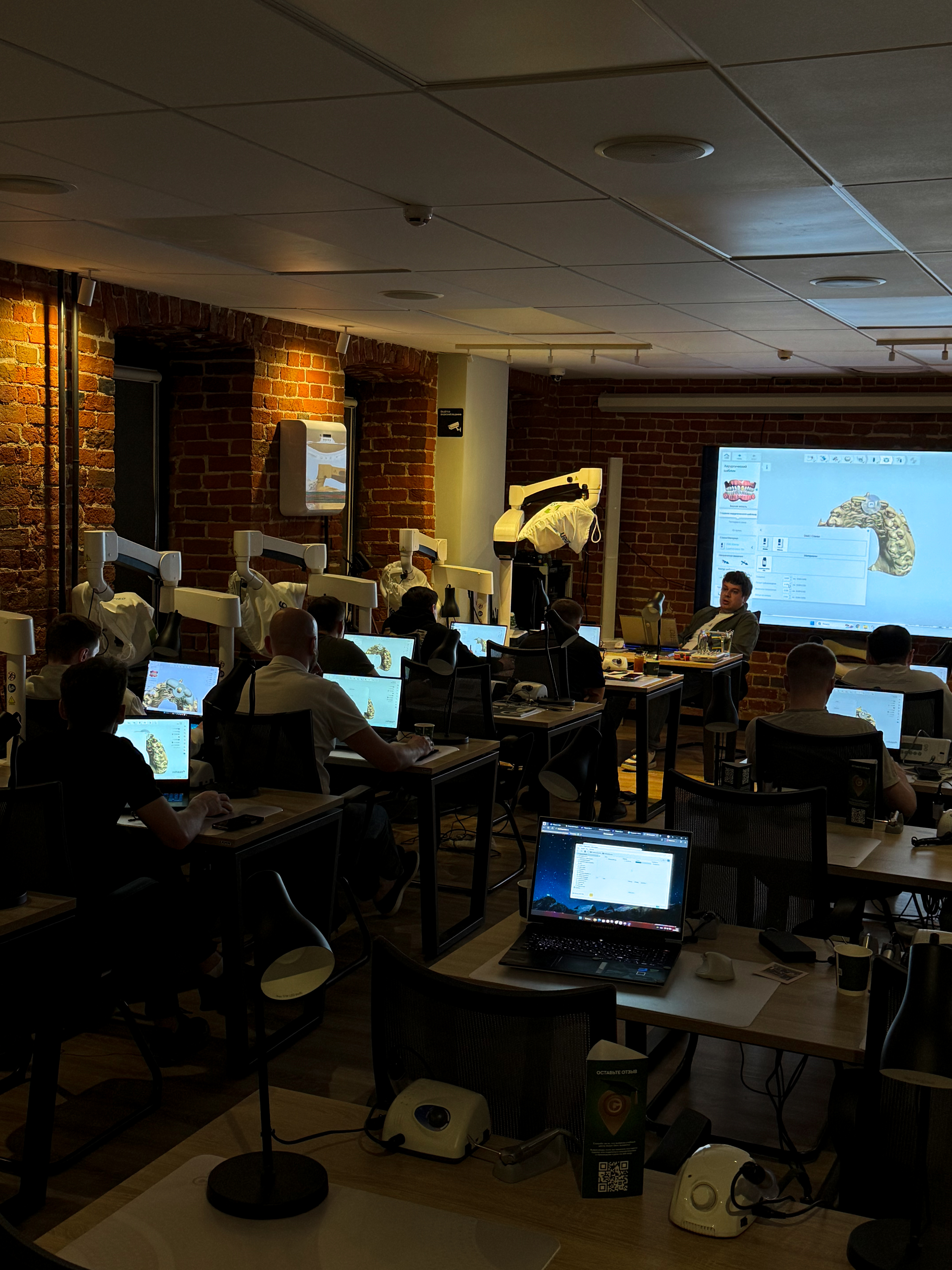 После насыщенной теории, они на практике отработали моделирование шаблона, коронки и абатмента, а также провели установку имплантатов через шаблон с немедленной нагрузкой.